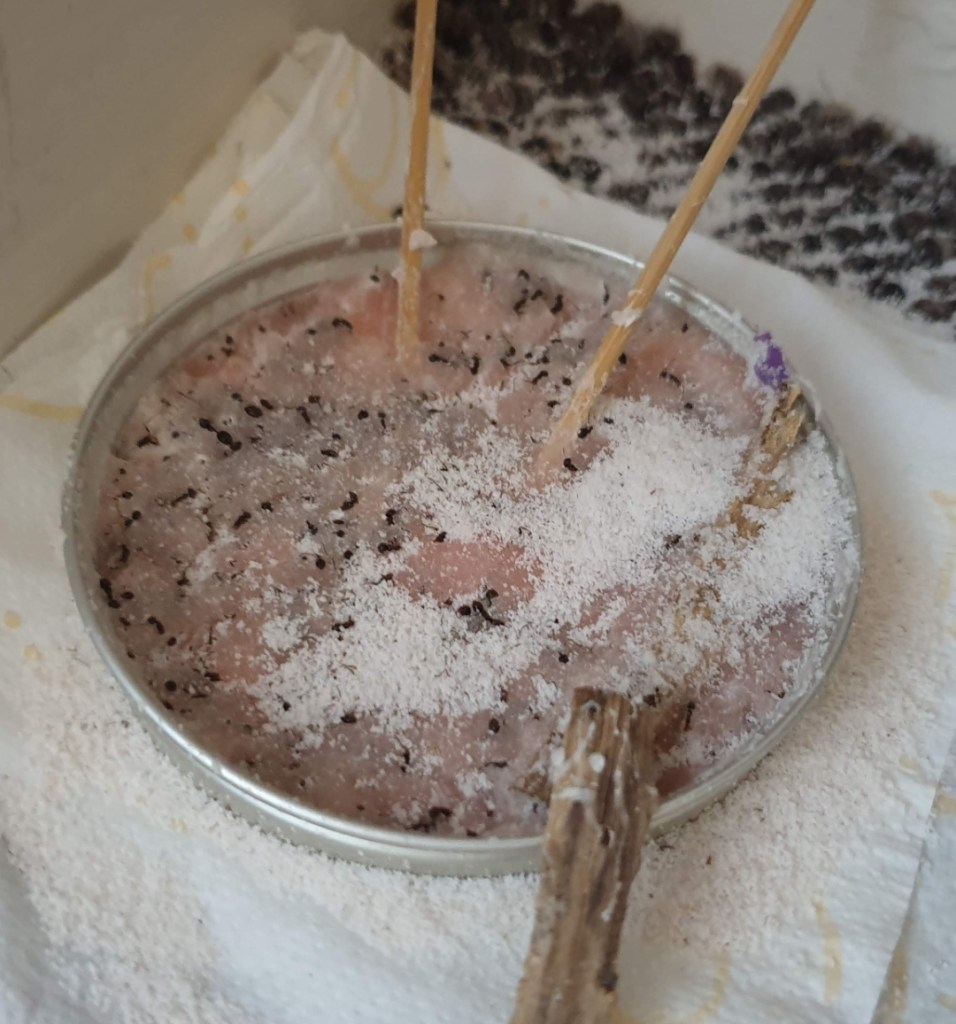 Meng maizena met poedersuiker (gelijke delen) en leg dit in een hoopje bij de ingang van hun nest.
